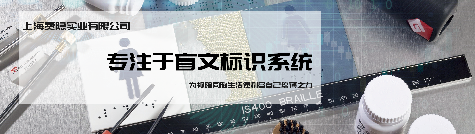 上海費隱實業有限公司是一家專注于盲文標識系統研究及相關產品開發的科技型企業,推動盲文標識系統的普遍應用是我們的神圣職責。公司成立數年來,我們得到了各地盲校、殘聯、標識協會和多家愛心企業的鼎力支持,目前產品已經遍布首都機場、上海虹橋、天津高鐵、杭州地鐵等大型公交樞紐,以及眾多醫院、學校、賓館、公園、行政服務中心等公共場所,也成為了很多愛心企業指定的盲文標識供應商。我們愿與所有樂于助盲的伙伴一起,...